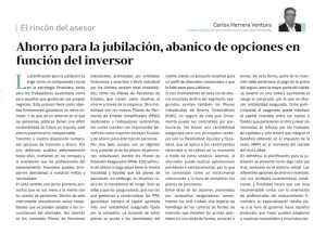 En dicho artículo, de manera amena y didáctica, Herrera nos desglosa las diferentes opciones de ahorro según sea nuestro perfil de ahorrador. Ya seas trabajador asalariado como autónomo, tengas un perfil más arriesgado o seas más conservador, hay que saber que siempre habrá un producto financiero que se adapte a cada circunstancia personal.